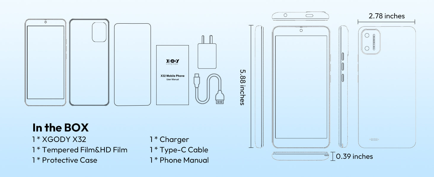 X32 5.5" Android 14 Unlocked 4G Android Phone | Built-in Face Recognition, Triple Card Slot