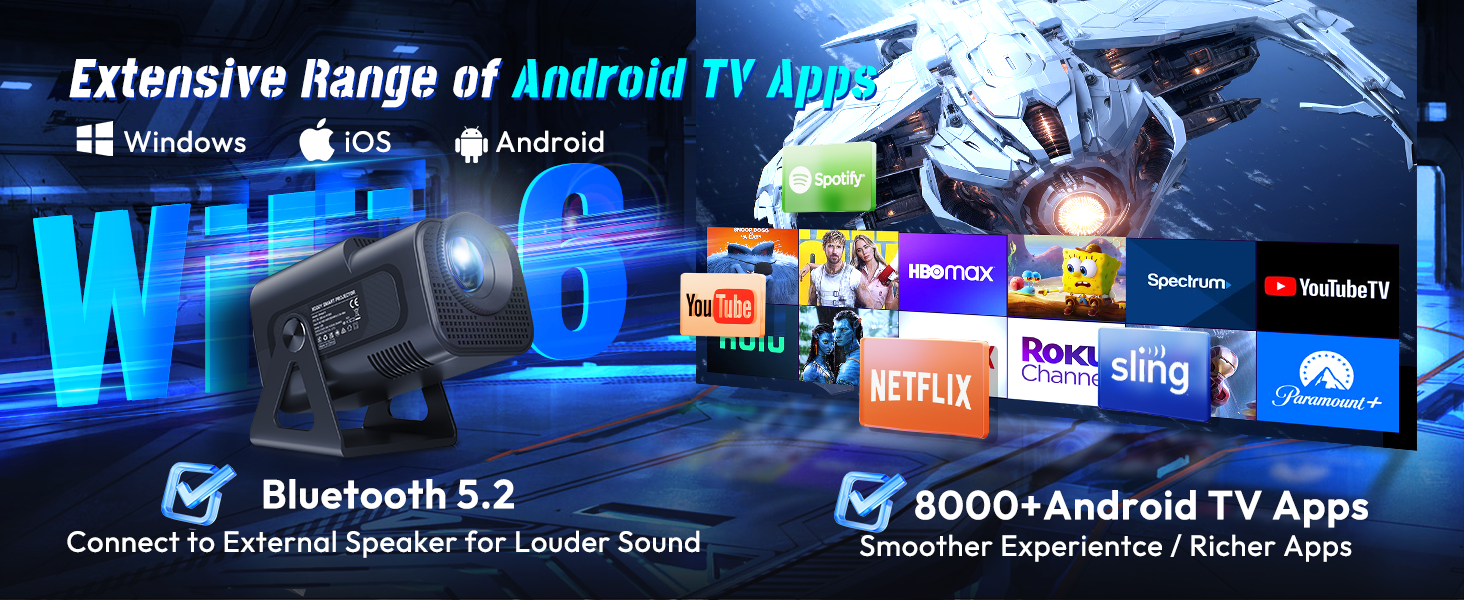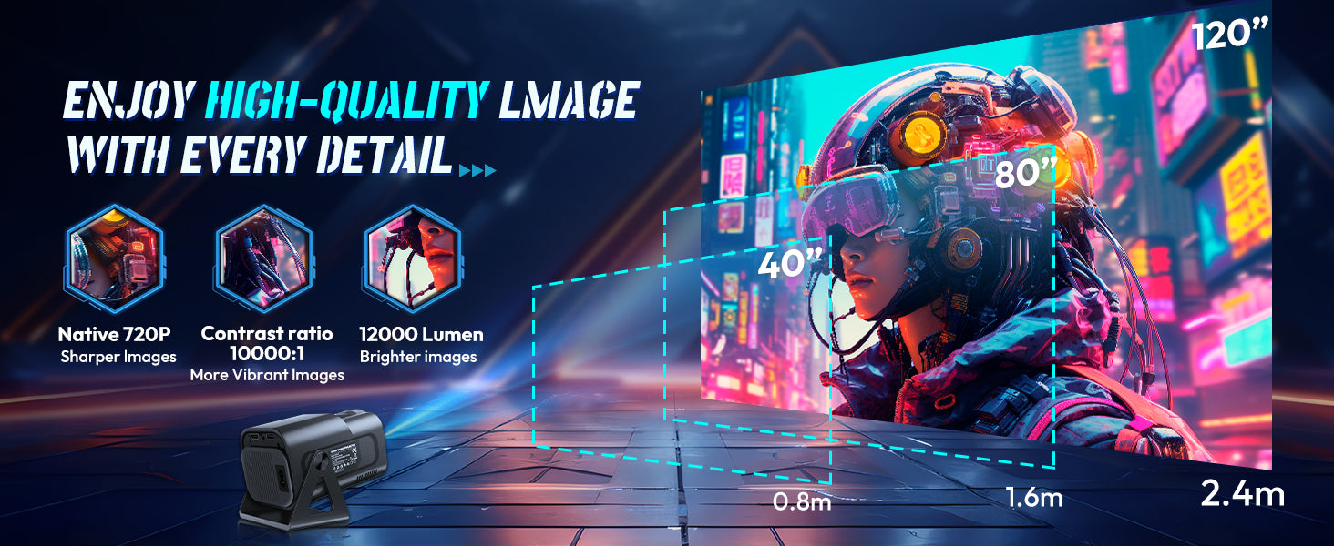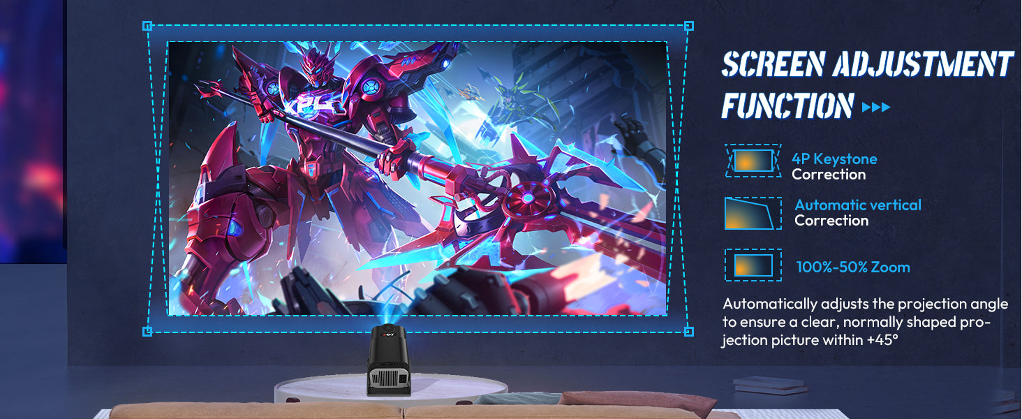 The Gimbal 5 Mini delivers native 720P resolution with 4K video support, creating a crisp, vibrant cinematic experience for movies, gaming, and more. Its lightweight, portable design and adjustable projection size, from 40 to 150 inches, make it perfect for home theaters or on-the-go entertainment.