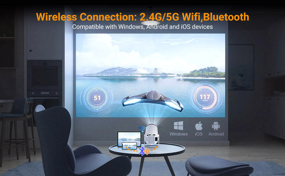 HY300 Mini Portable Projector With Apps Built-in, With Wi-Fi and Bluetooth Connection