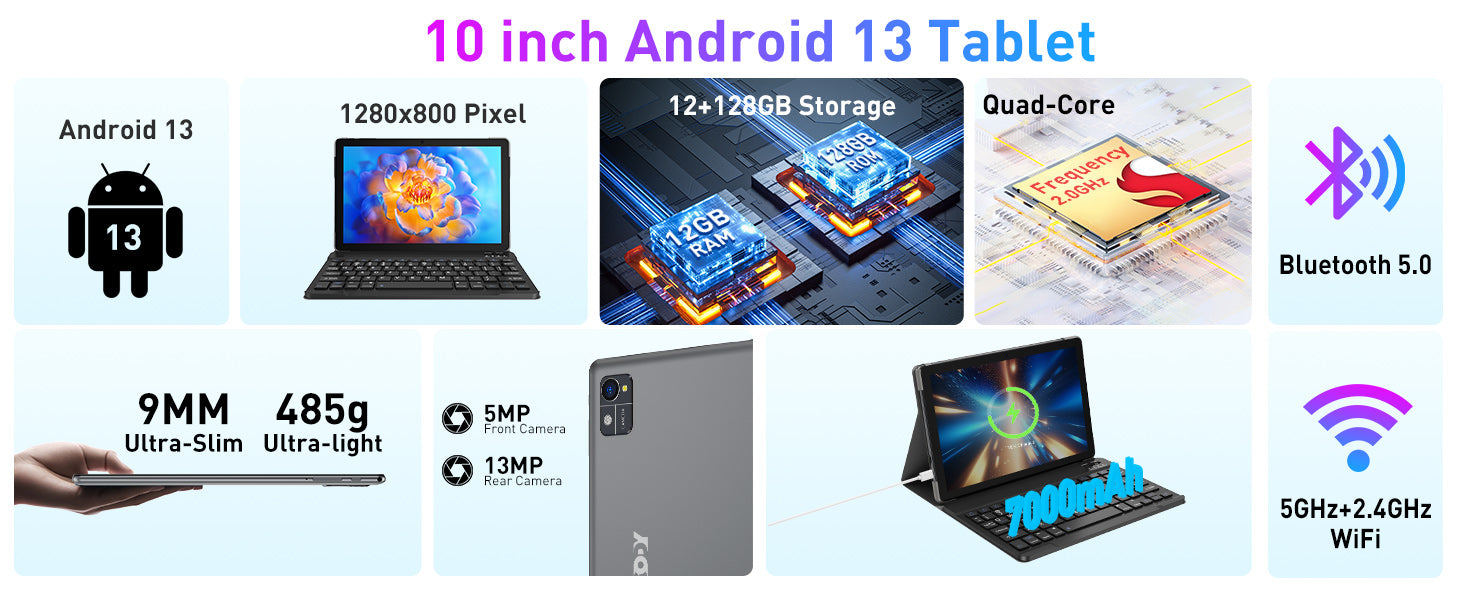 Equipped with a powerful 7000mAh battery, the tablet provides extended usage for work, study, or entertainment, keeping you connected throughout the day without frequent recharging.