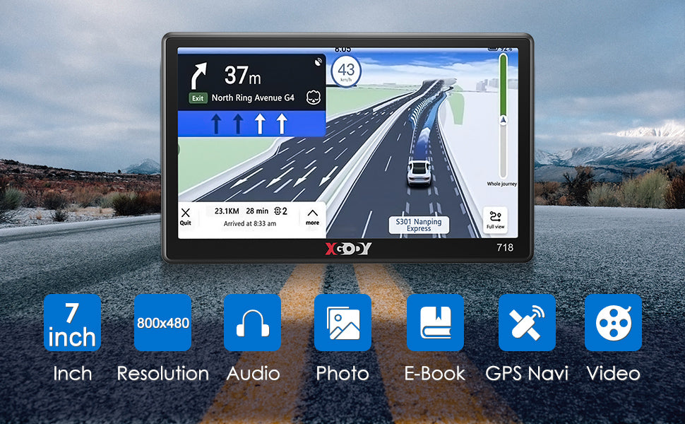XGODY Sat Nav 718 GPS Navigation System For Car Truck with Voice Direction Guidance Speed Camera Warning