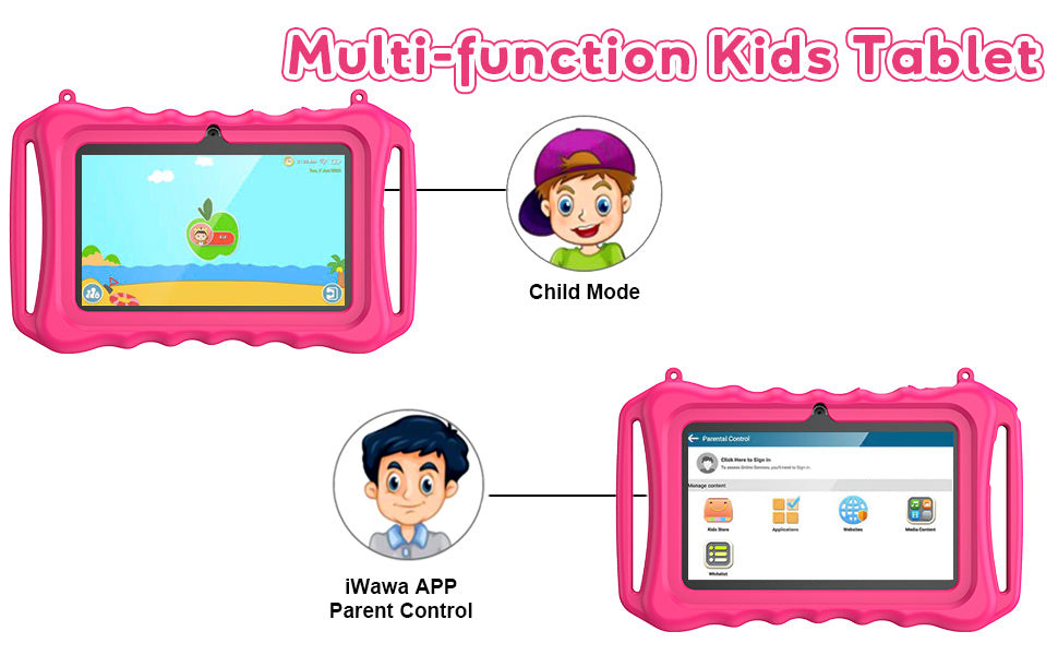 T702PRO 7 Inch Tablet With Case For Kids Aged 3-12, 32G With Bluetooth WiFi Module