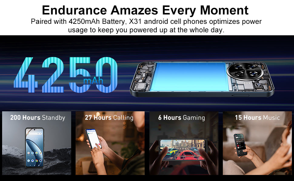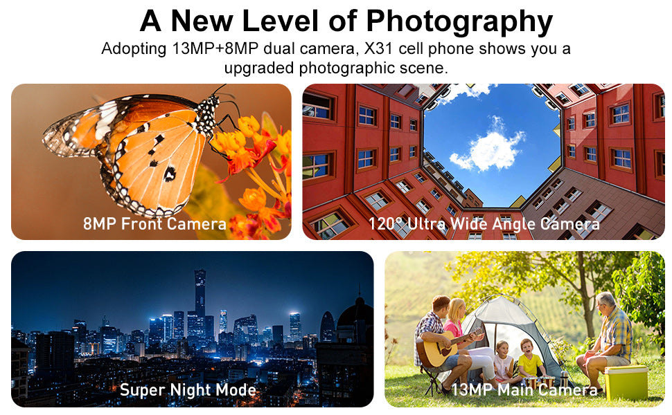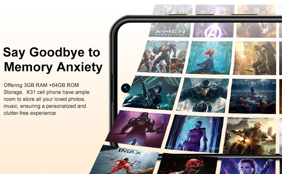 1* X31 Smartphone/ 1* Tempered Film/ 1* HD Film/ 1* Android Phone Case/ 1* Type-C USB Cable/ 1* User Manual / 1* SIM card pin/ 1* Aftermarket card